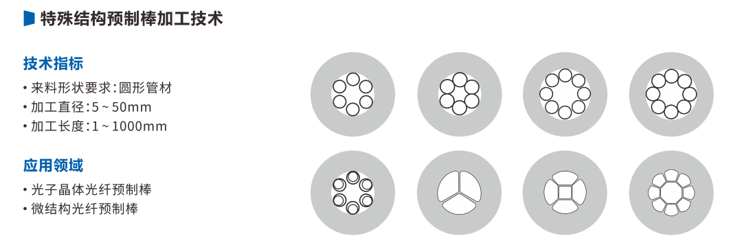 百乐博平台通公司拥有全系列的特种光纤制造平台,可提供各种光纤预制棒的加工处理技术,最大限度满足客户的技术需求,为客户提供解决方案;