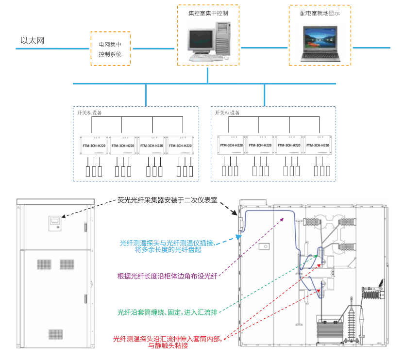 开关柜荧光光纤测温一监控系统示意图